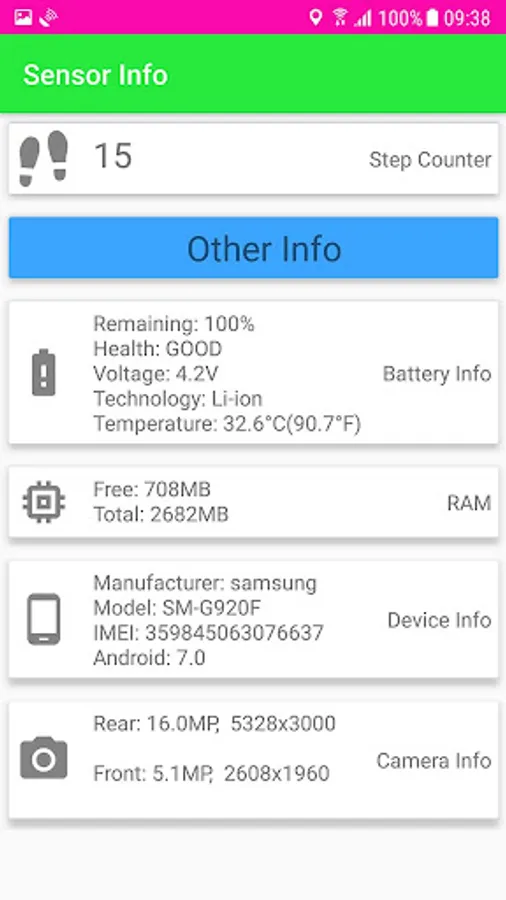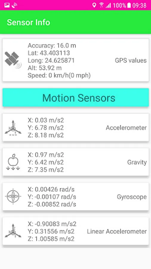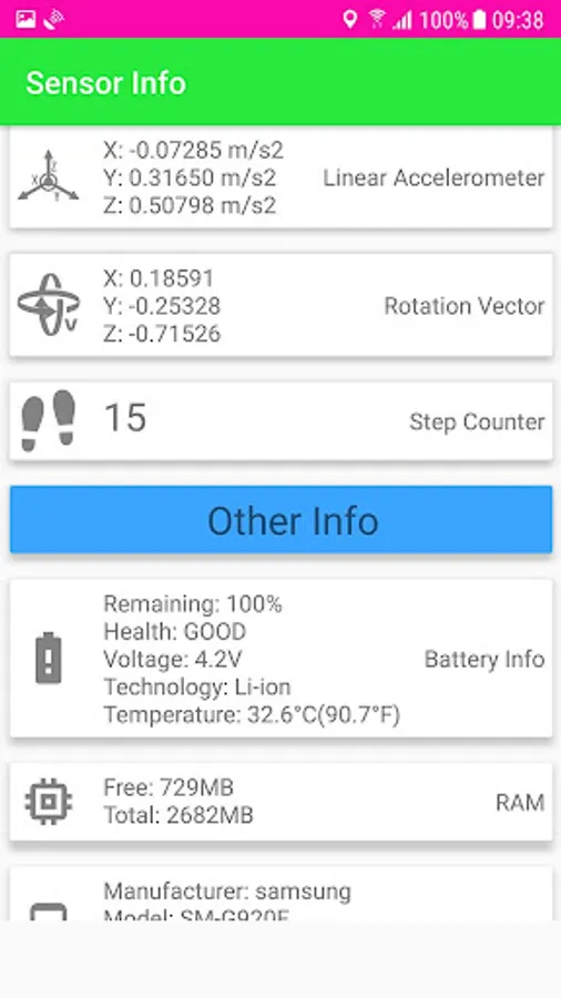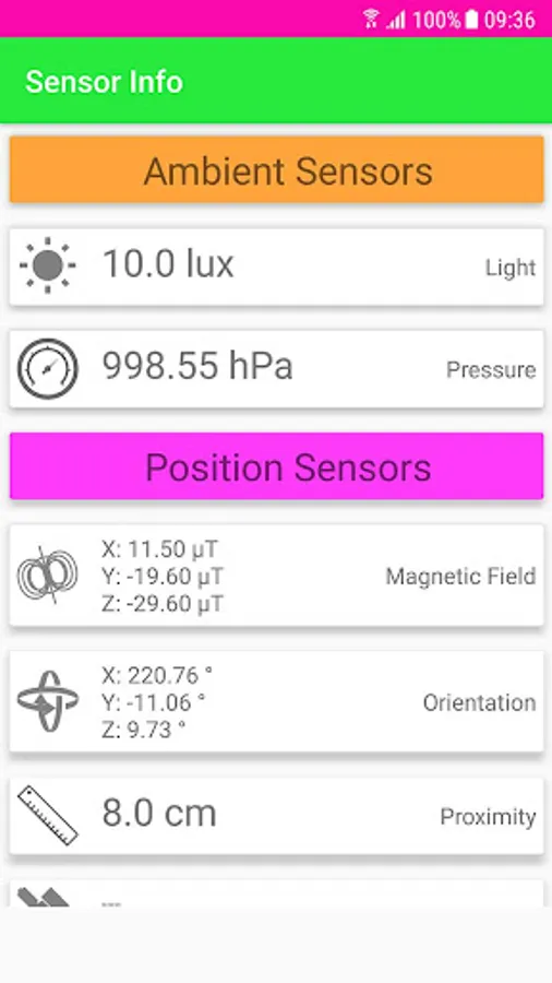 Sensor Info is a small app, that reads real-time data and details from the sensors in your device.