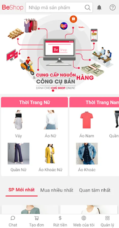 - Quản lý nguồn hàng, sản phẩm, giá bán, đơn hàng tất cả chỉ với Beshop.