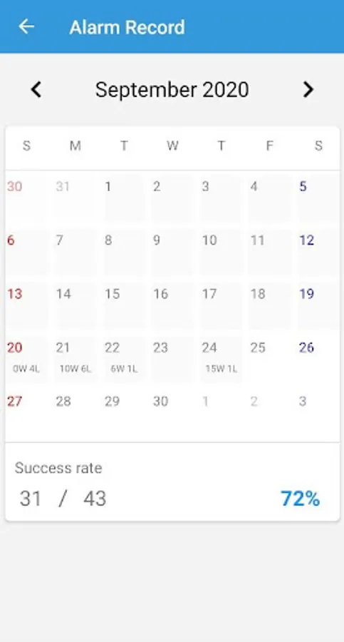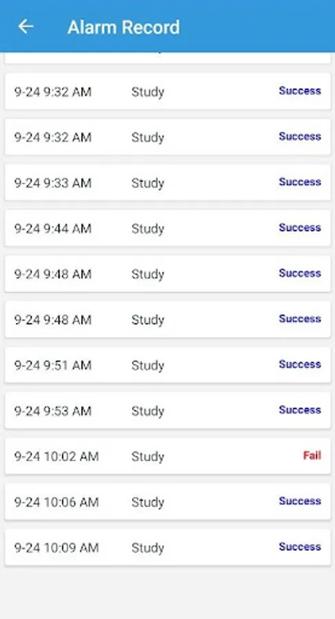 - The success/failure of the alarm is automatically recorded. You can look back on your habits through records.