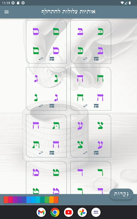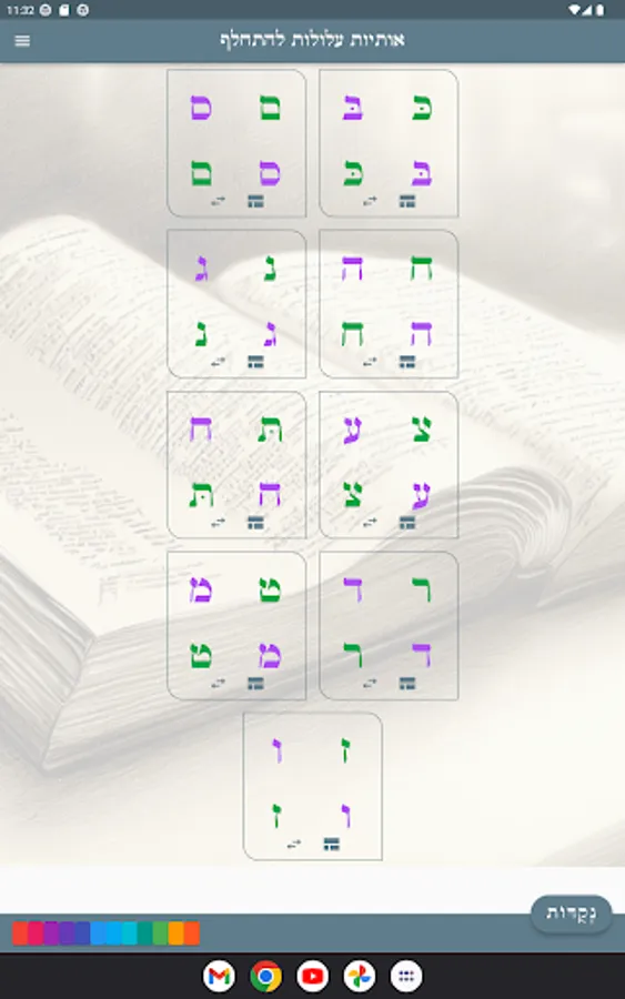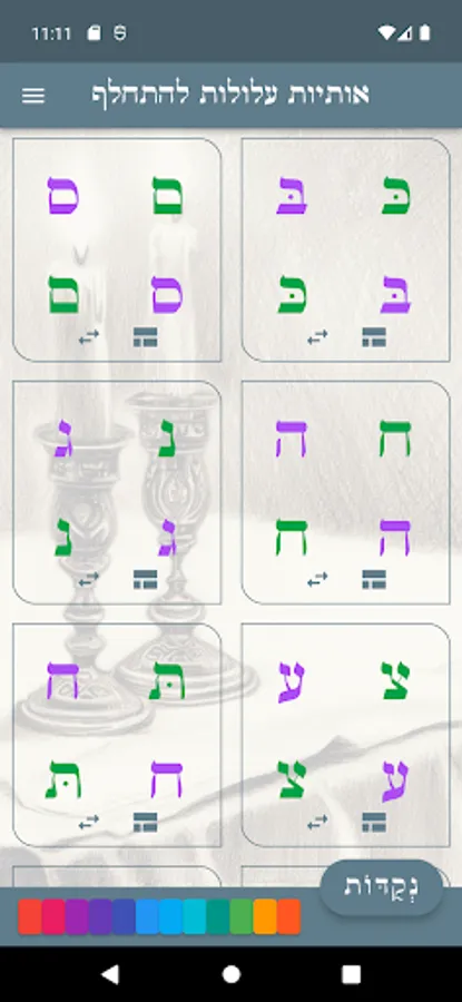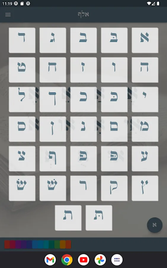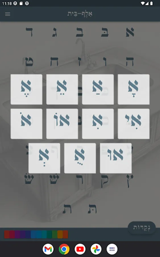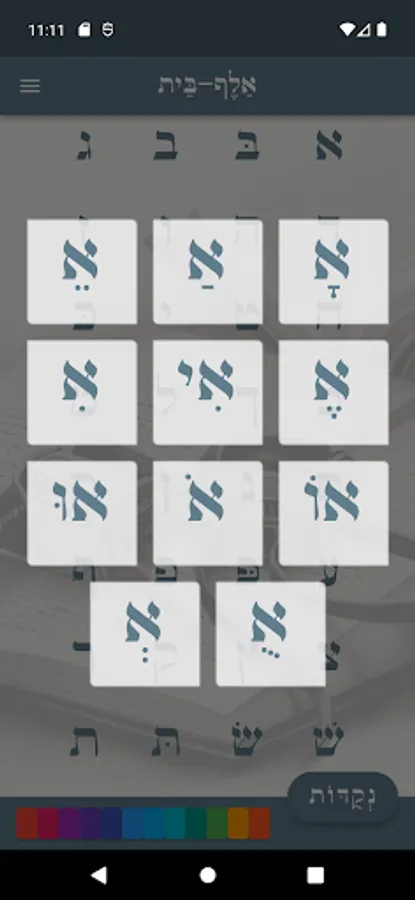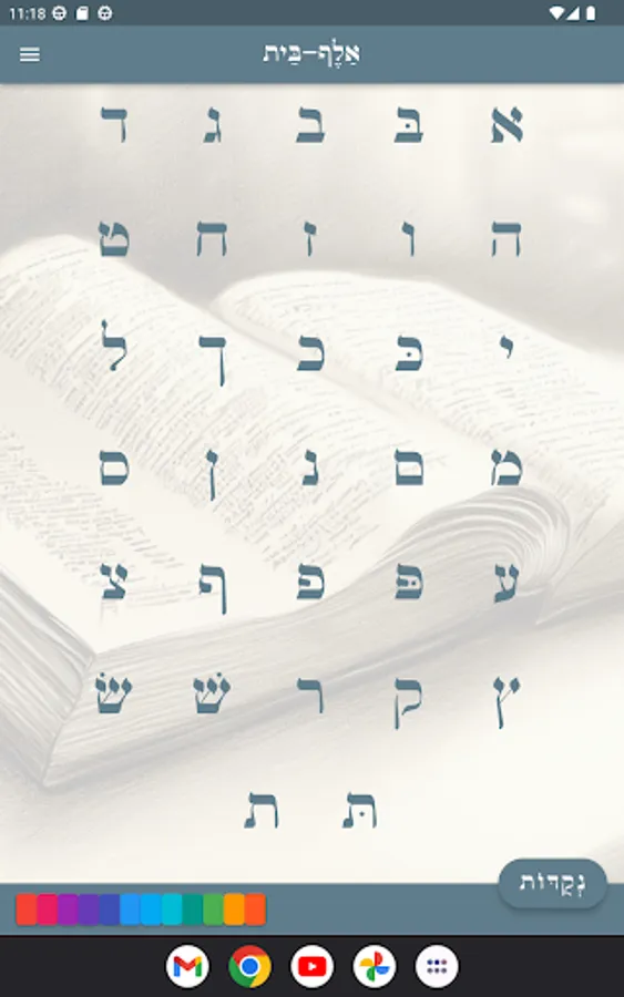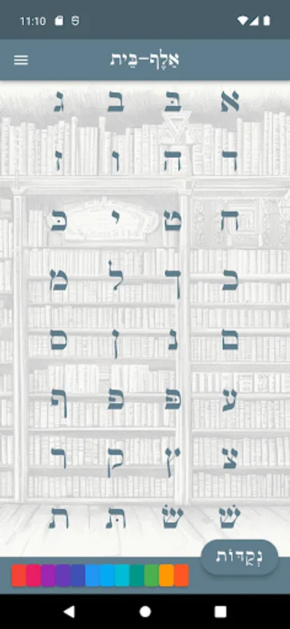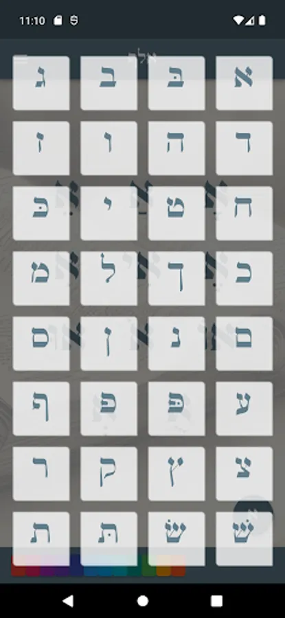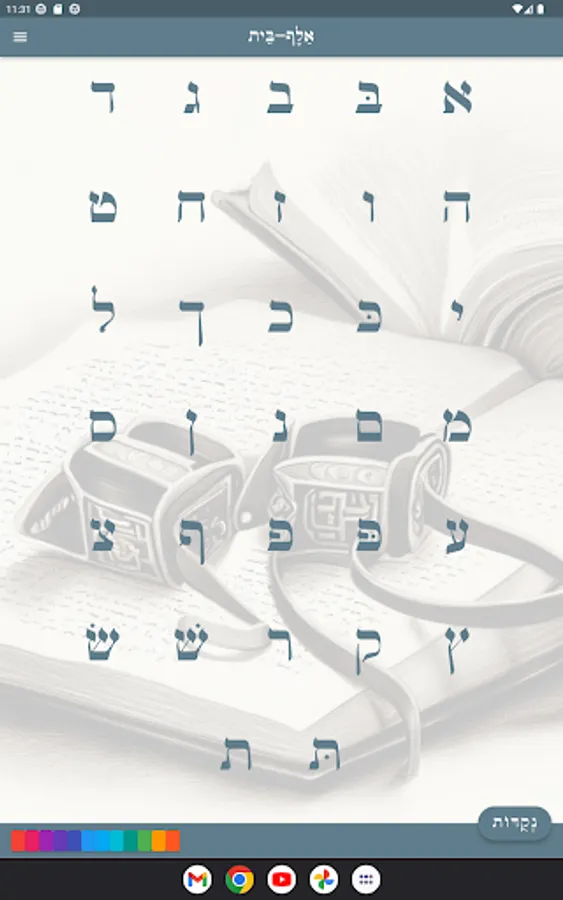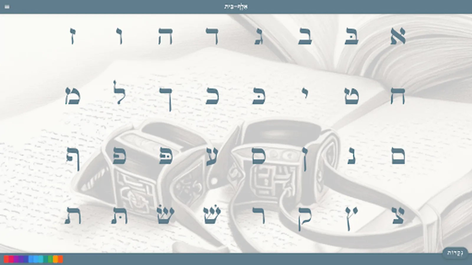 An app to help learning Alef Beis, be"H composed with help and based on the first pages of Toiro Oir and Tehilas HaShem and the "Seifer le tinoikois shel beis rabon".