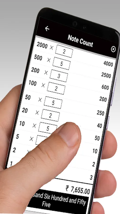 This option is a Cash Calculator of Indian Denomination and ideal for counting the bank notes. Just enter the count of each denomination, then will get you the total of each denomination and the Grand Total and Grand Total in Words as you type. Also easily count currency notes of different denominations.