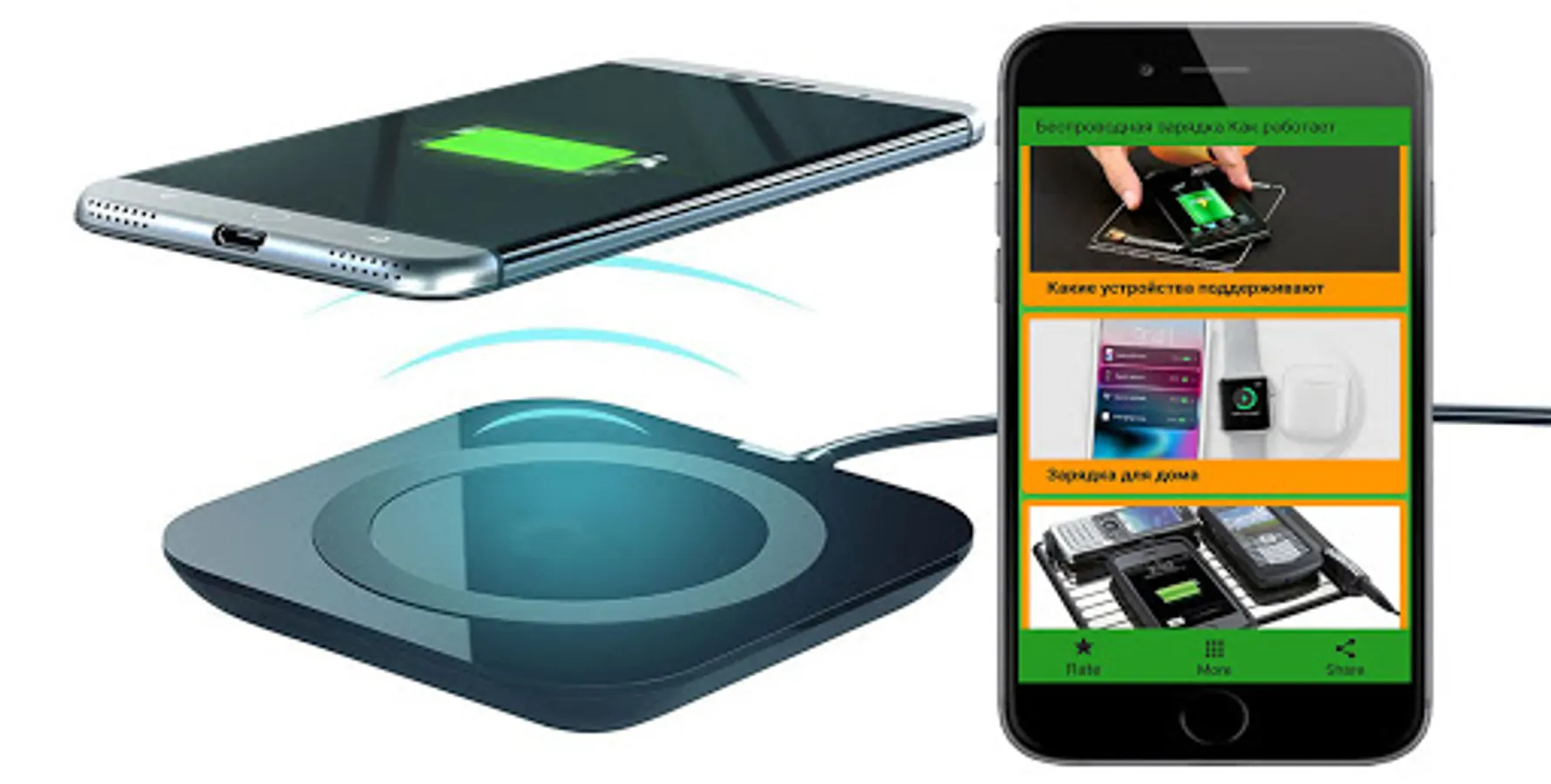 The development of smartphones does not stand still and technologies such as a wireless charger for a phone no longer looks like magic, but rather routine, because wireless charging for a phone is already supported by many smartphones, but they have a number of limitations and this hinders their development. The principle of operation is like a docking station, charging without wires occurs when electromagnetic induction begins to work. It seems that wireless charging for a phone or any other device with support for this technology is simply the transmission of electricity over the air. The application contains information about wireless battery charging technology, various international standards for charging without a wire, the device and the effectiveness of how a wireless charger develops it. Many battery charging manufacturers support the basic standard, which means that having one charging station can be used to charge the battery for Android or another device that supports this standard. Fast charging without a wire is feasible by technology, it depends on the power and current strength, but has a reduced charge efficiency. The application does not allow you to charge your smartphone and does not increase the charging speed, but provides information about the wireless charging technology for the device.