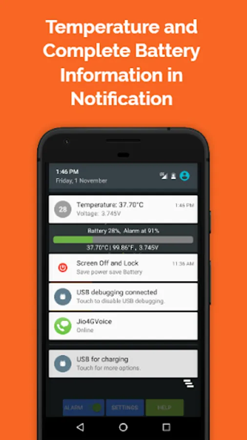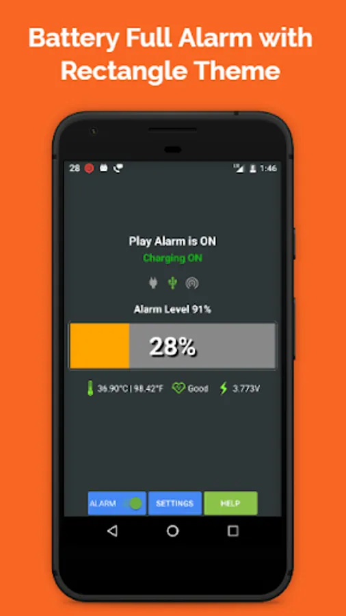 There is no other battery alarm app with such user friendly UI, Ease of Use, intuitive, neat and aesthetic interface, with blend of lots of features in one app only.