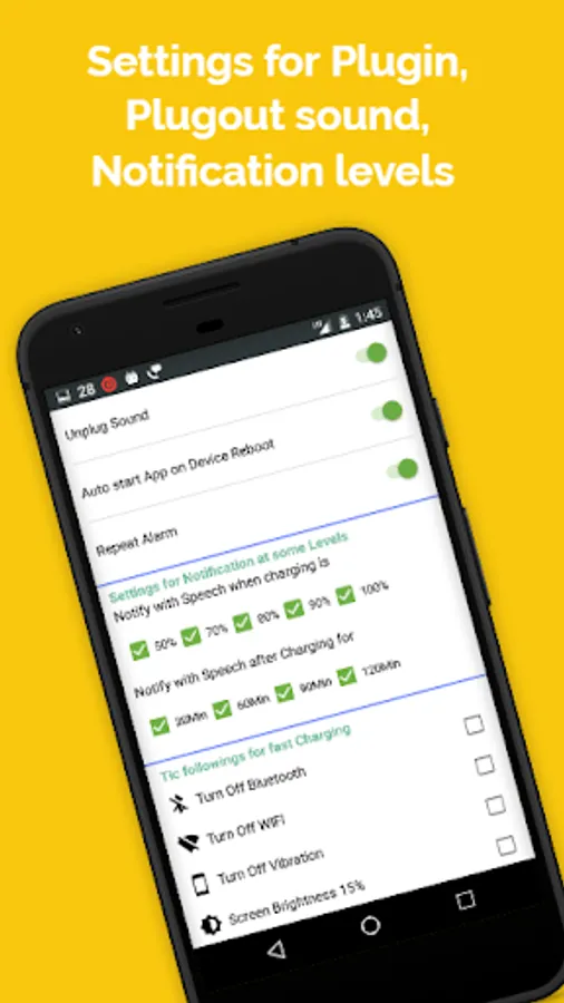 Very soon we are coming with Notification at different charging level, and Notification at Different Time Of Charging. also bringing Actual battery full alarm Feature.
