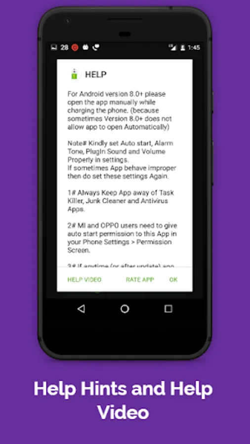 NOTICE: If you use any task killer or Ram cleaner or Antivirus apps, kindly add this app to ignore list or white list. Otherwise, battery alarm may not work properly
