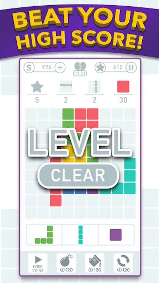 - Can't figure out your next block puzzle move? Use coins to get a powerup and win the level!