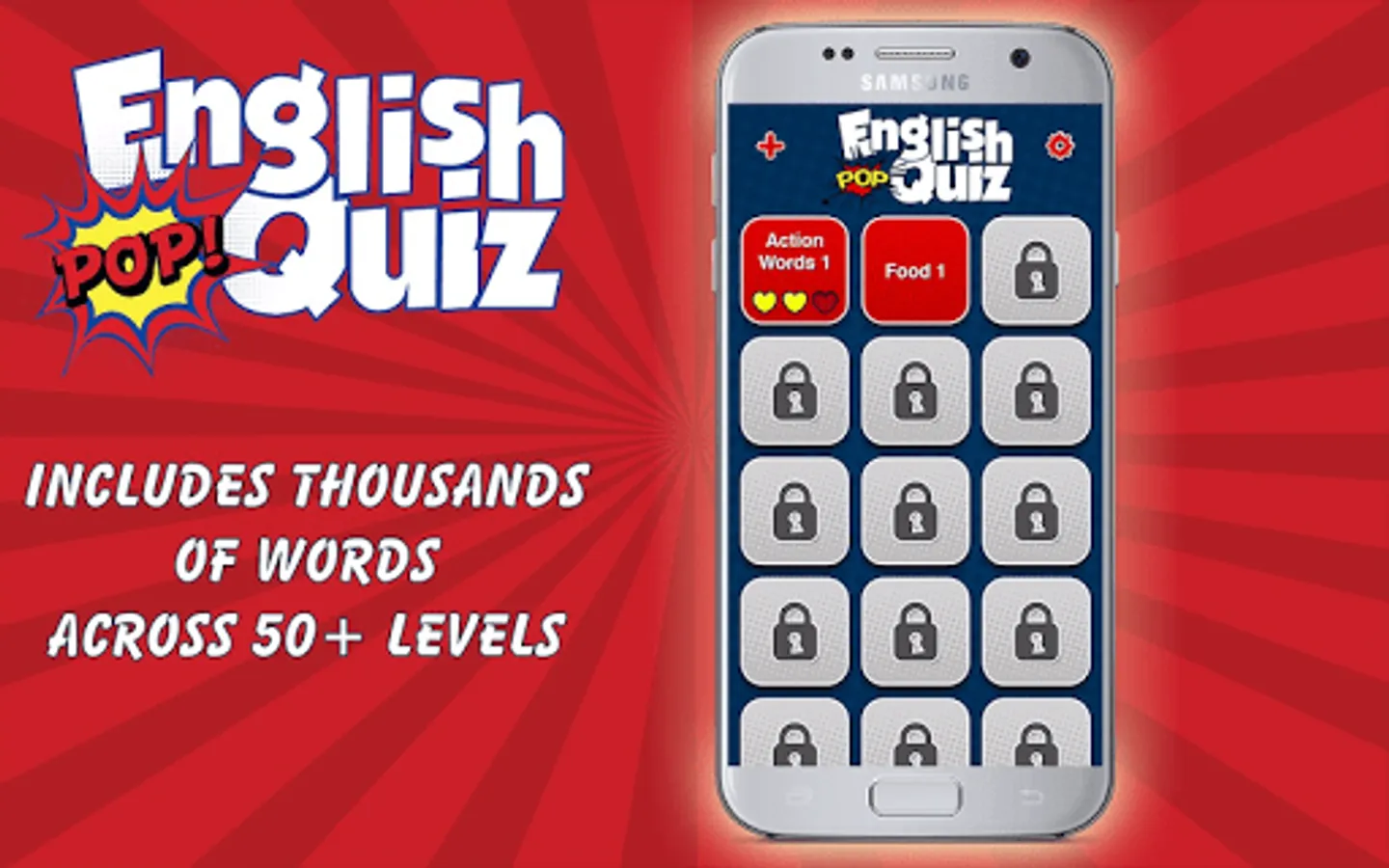 Unlike most “learn English” games, with the English Pop Quiz 2 you will never be stuck. You can always keep playing and you will automatically learn and discover the meaning of the words you don’t recognize on your first attempt.
