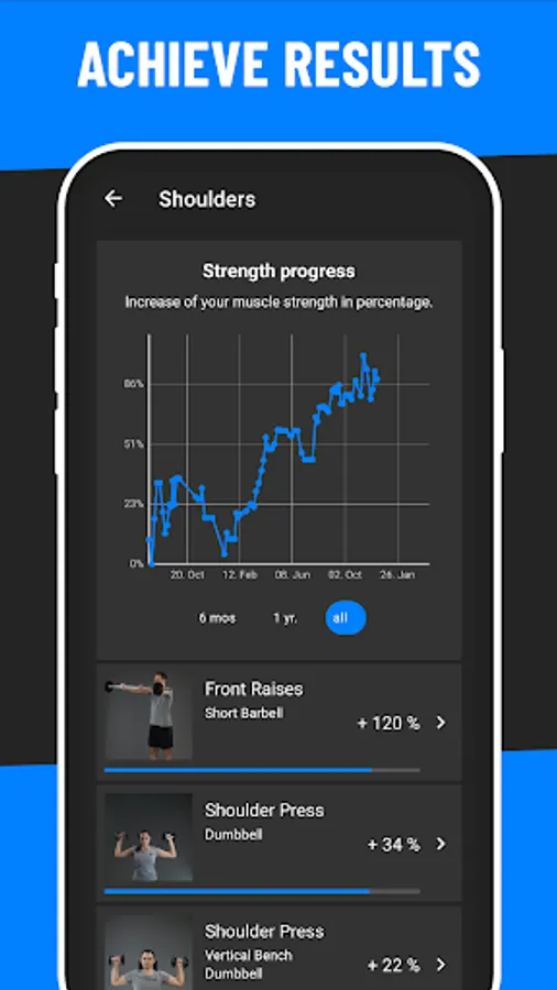 No matter how you decide, whether only with your bodyweight or with equipment. The BestFit Home App is your personal trainer, accompanies and motivates you during your entire training routine and beyond. With the smart training control, time-consuming and non-goal-oriented tests for classification are a thing of the past. The BestFit Home App can predict the optimal weights already for your first workout and adjusts them continuously and live to your performance level.