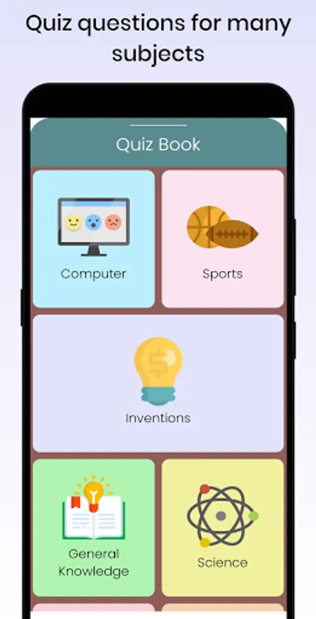 IQ Test & Quiz also provides Quiz Book, which contains many trivia questions related to variety of subjects/topics.