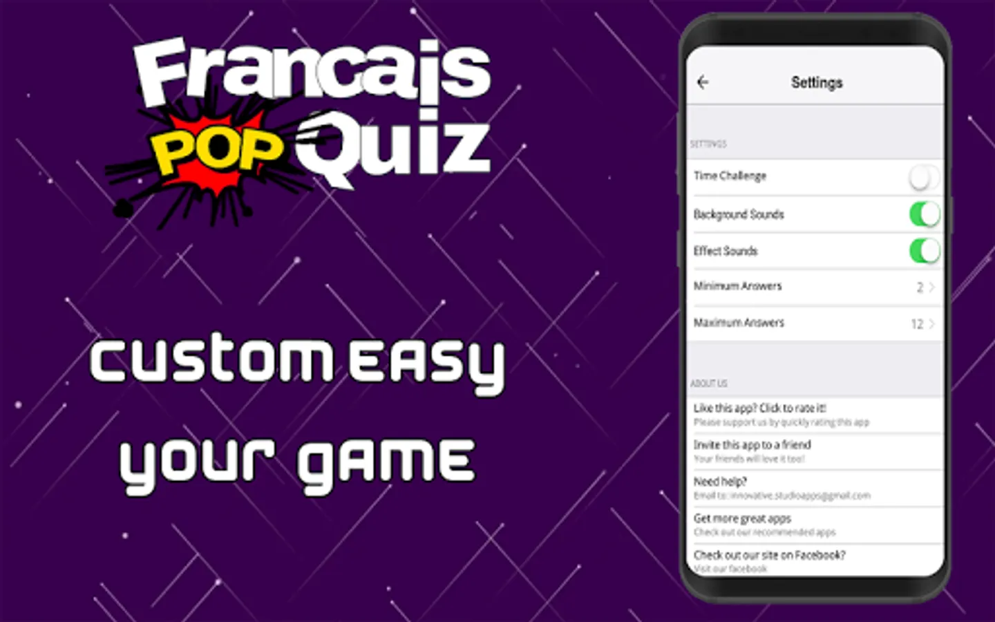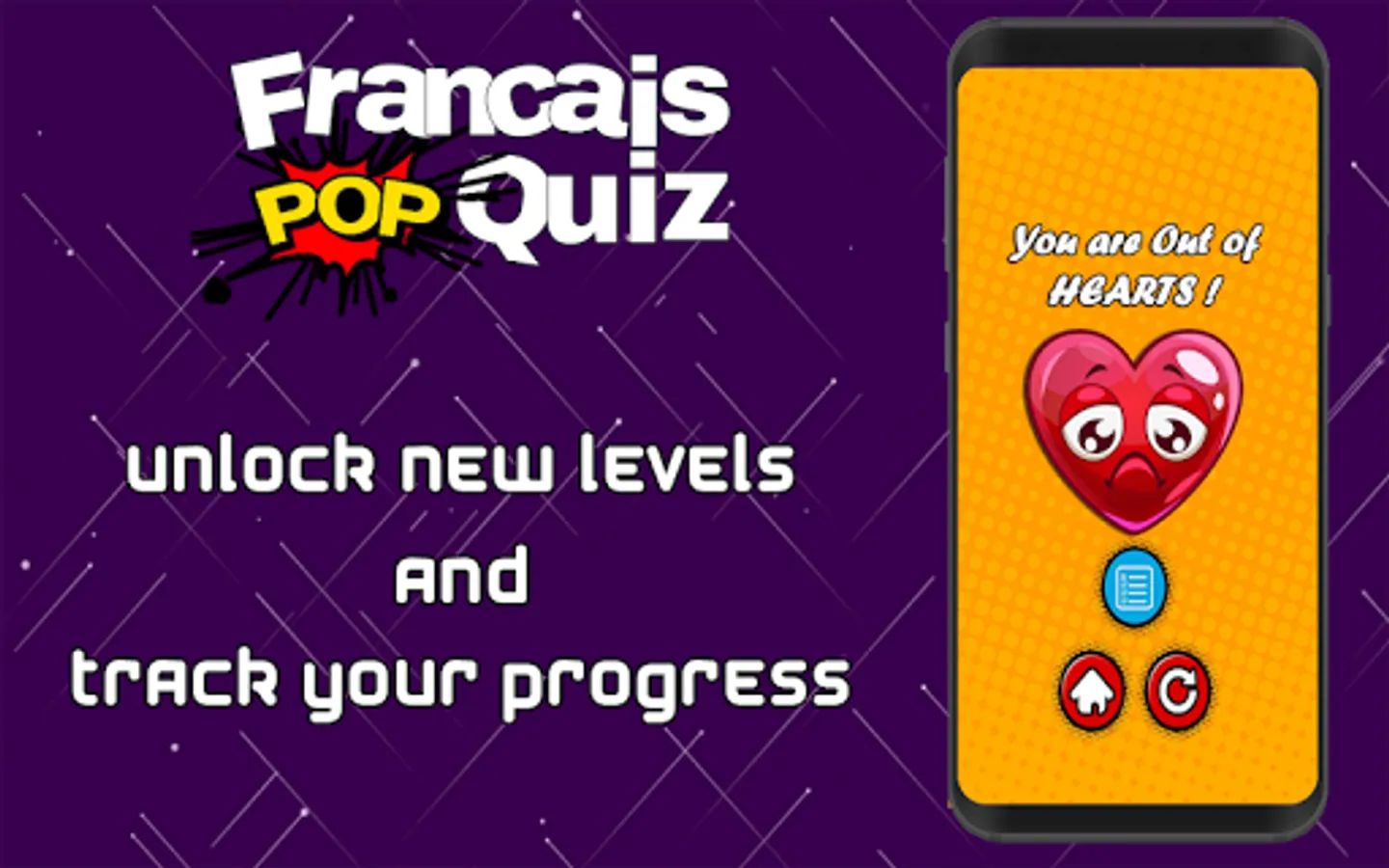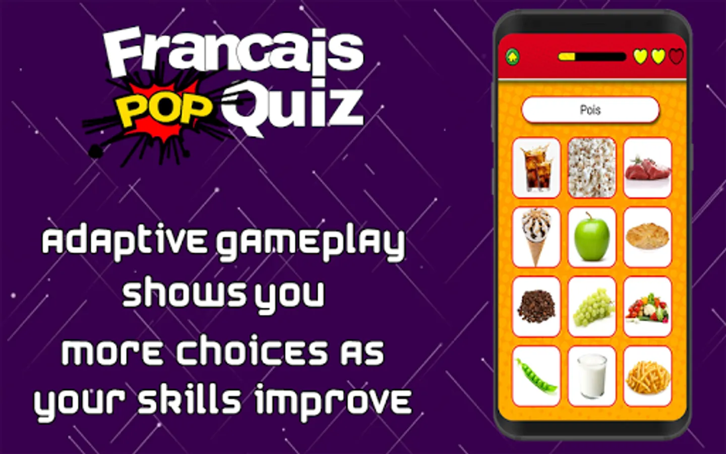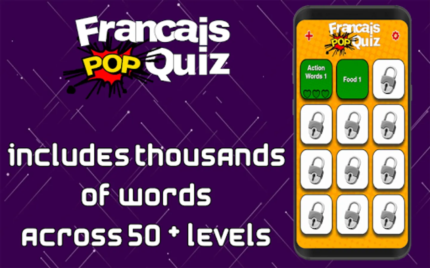 Unlike most “learn French” games, with the French Pop Quiz you will never be stuck. You can always keep playing and you will automatically learn and discover the meaning of the words you don’t recognize on your first attempt.