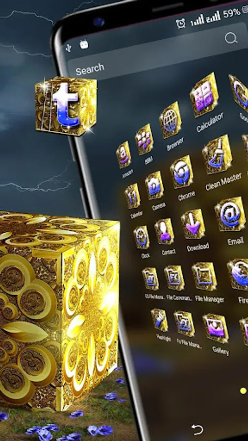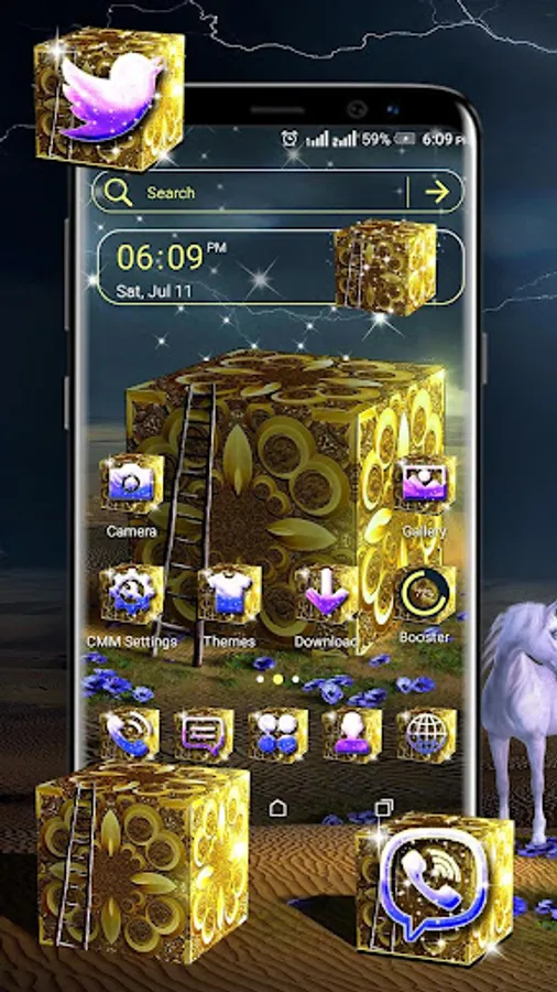 You can personalize your Android phone or tablet with our amazing launcher theme, Golden Cube Launcher Theme today!