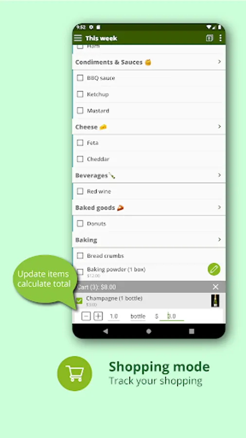 - A excellent shopping list with Editing and Shopping modes separated: The handy edit mode to plan your shopping strips. The shopping mode is optimized for shopping situations in the stores.