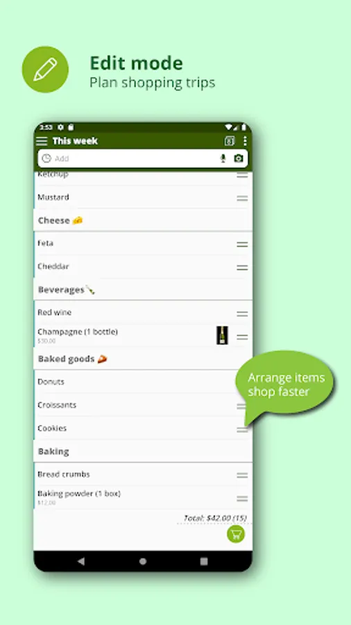 - A excellent shopping list with Editing and Shopping modes separated: The handy edit mode to plan your shopping strips. The shopping mode is optimized for shopping situations in the stores.