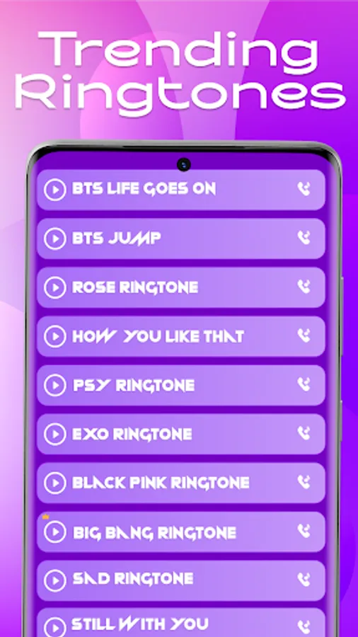 Kpop Music - Ringtones Store & Kpop Songs is a free Kpop ringtone software that synthesizes the greatest and most distinctive hit songs for you to set as a call ringtone, alarm, and notify your phone.