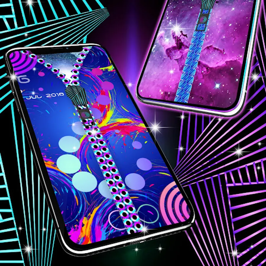 Zip locker theme for lock screen is a classic lock screen for android phones that unlocks using a zipper. Just drag down the zipper and the magic will happen.Create your own theme with a neon purple and blue wallpaper and a glowing row in combination with a beautiful purple satin lock screen background. Make your lock screen cool with unique wallpapers for your phone and lock screen!