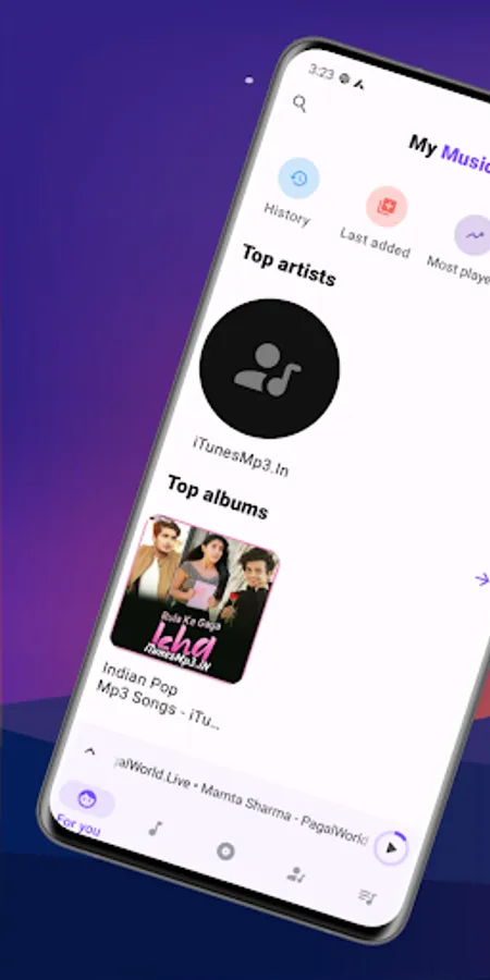 My Music Player is powerful music player which supports all format of audio like .mp3, .wav, .m4a, .ogg, .m4p etc to play music.