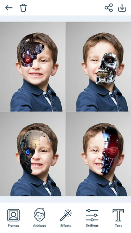 ✔ Do you like cyborg face? We have 15+ stickers and robot mask stickers to be added on your photo!