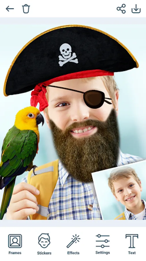 ✔ Use amazing photo effects like pirate hat and pirate parrot to look like a pirate on photo!