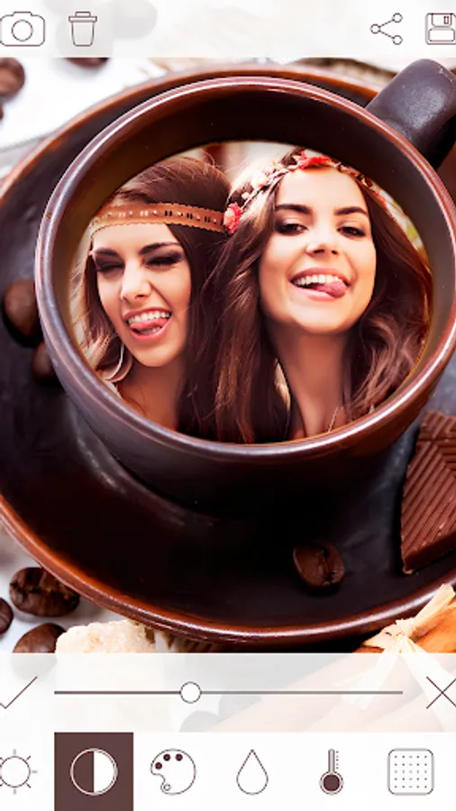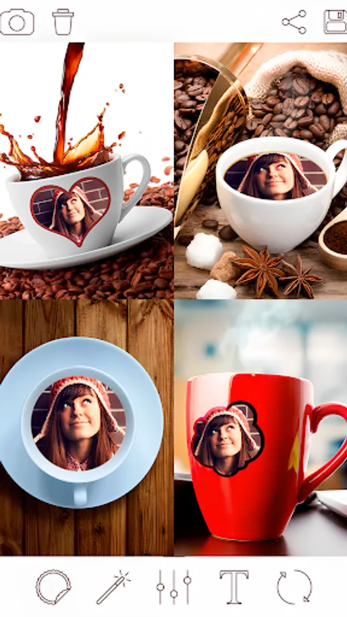 ★ Coffee Cup Photo editor has a huge coffee and tea cup frames collection for your photo: