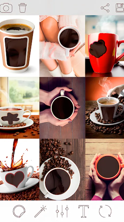 ✔ Coffee Cup app has 50+ coffee cup photo frames to place your photos! Find your favourite coffee cup!