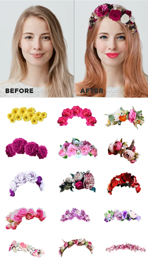 ❤️ Flower Crown hairstyle is the best and free photo editor app to add beautiful Flower Crown to your change hairstyle!