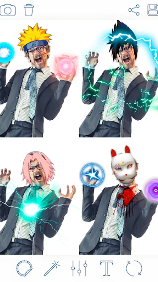 ★ Jutsu Rasengan Photo editor has a huge stickers collection for your photo: