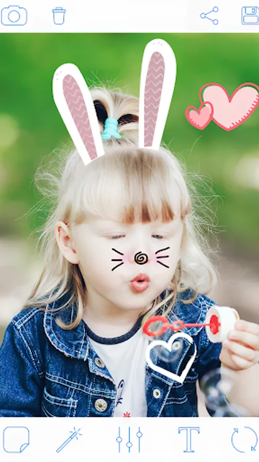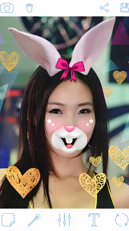 ♡ Create fun photo with pink bunny ears or bows on photo, applay cool effects, add Rabbit muzzle on photo just in 10 sec!