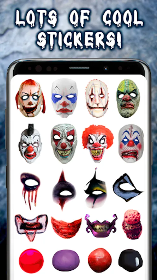 🤡 Scary clown game has many photo stikers for the best selfie photo: