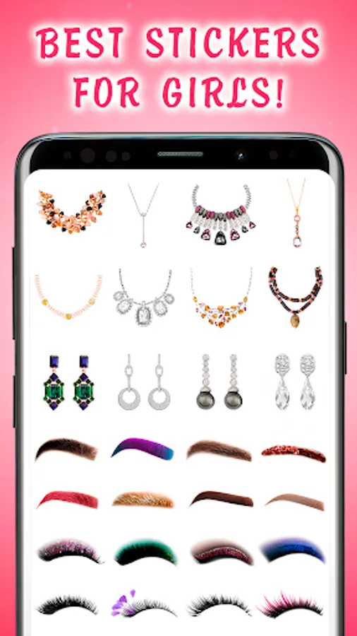 ♡ Add Jewelry or acces on photo: Necklaces stickers, Earrings stickers, hats, sunglasses and many more!