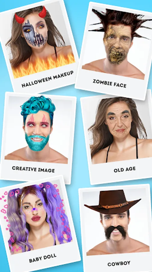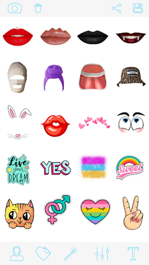 💙 Experiment with hairstyle, eye makeup, lips color, and other photo face stickers!