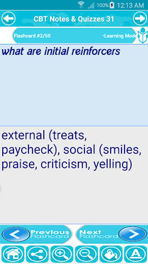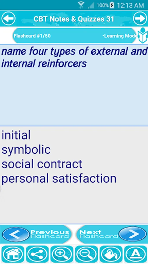 This app is a combination of sets, containing practice questions and study cards, terms & concepts for self learning & exam preparation on the topic of Cognitive Behavioral Therapy (CBT).