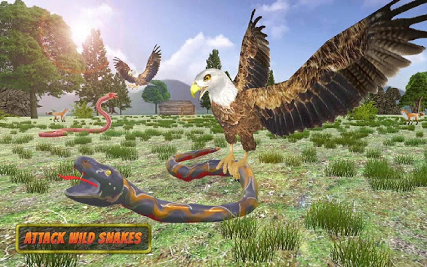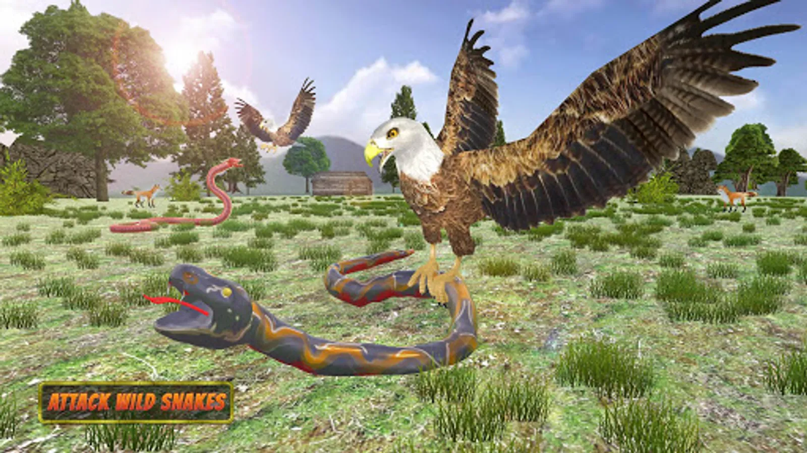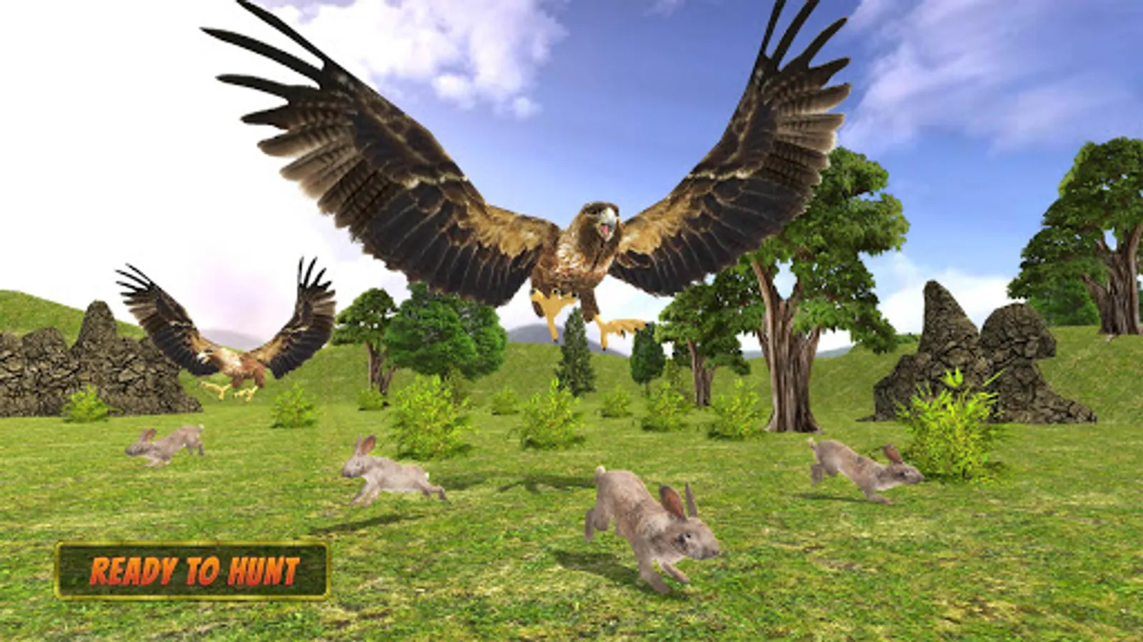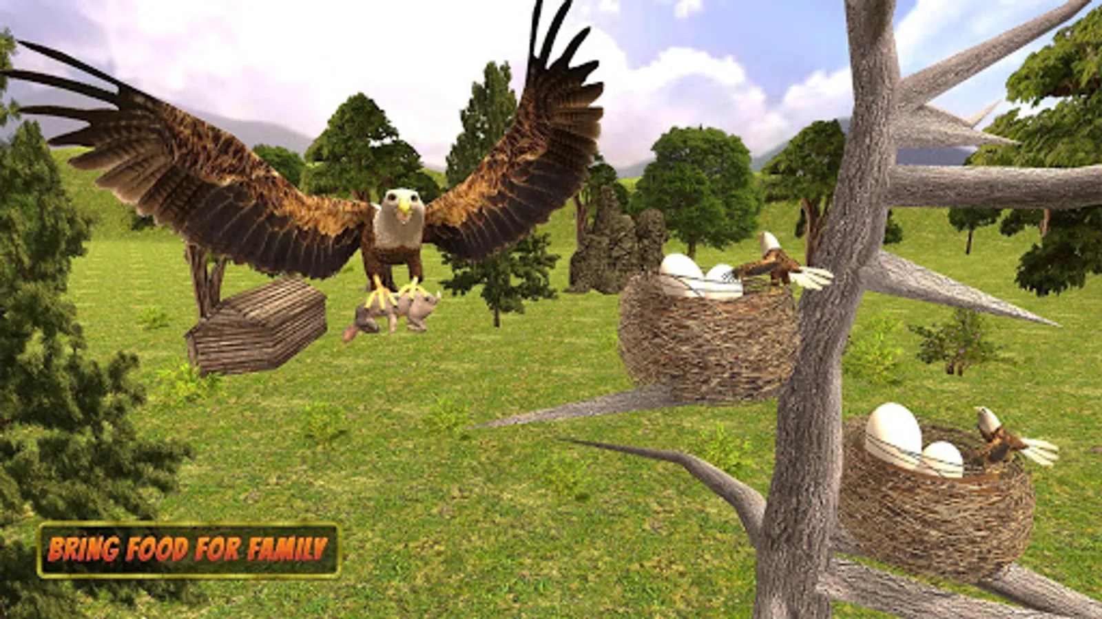 In Eagle 3d bird simulator game, Eagle hunting wild animals for family growth.