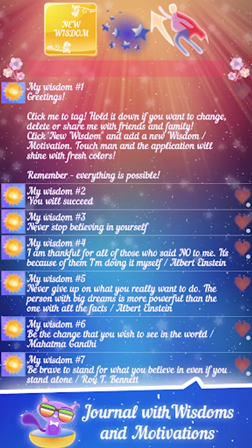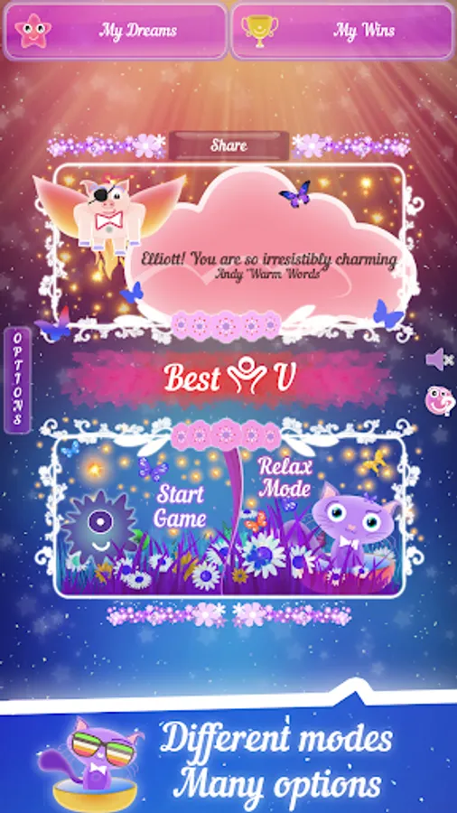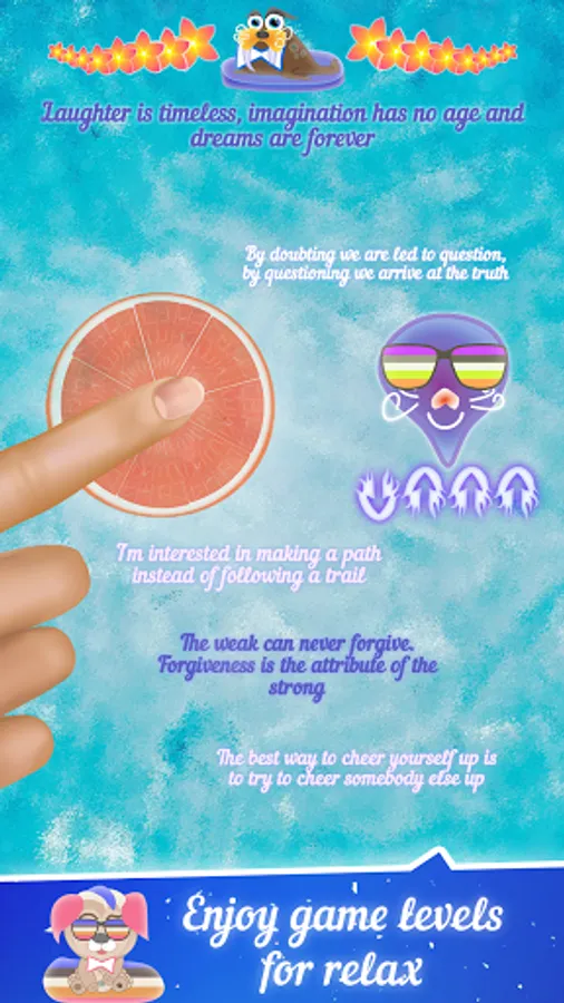 Enjoy special game levels designed to relieve stress and tension. Just move your finger across the screen and get warm words, inspirational quotes and reminders of your dreams and achievements!