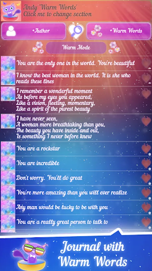 Relax in the special "Relax" mode, where warm words appear beautifully one after another, accompanied by wonderful music.