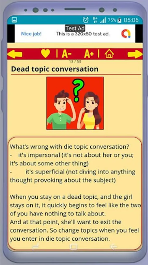 if you want to know how to talk to a girl or a boy,and the things to talk about with your boyfriend or girlfriend, when you run out of things to say. then you are on the right path in our application, we will provide you with questions to ask, and conversation topics and things to talk about and relationship advice that will help you to discover your sweetheart in a new way. and to overcome the confusing moments of silence when talking to your boyfriend or girlfriend.