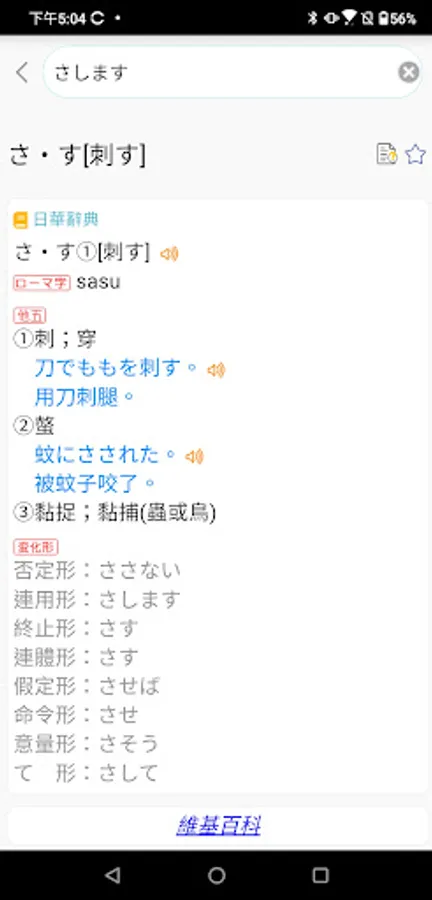 8. No matter you are searching nai-form, conjunctive form, predicative form, Conditional, Volitional or te-form; Dr. eye Cloud (JP) will automatically provide you the original form.