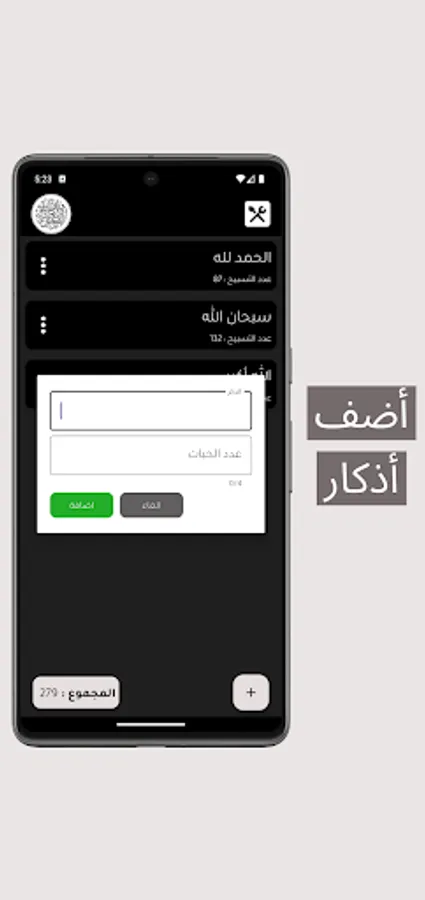 An application that simulates the electronic rosary, but in a better way. You can allocate a box for each dhikr with the number of pills you want in order to calculate the number of cycles you performed in each session, in addition to the total number of all dhikr.