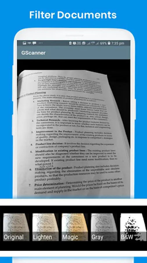 Gscanner is a simple camera document scanner app with high quality PDF output.