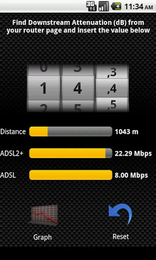 - ADSL maximum speed calculation. The application can estimate +-10% the maximum ADSL speed your router should have. This is based on an algorithm which uses also statistical data. You have to find from your router page the downstream attenuation (dB). Then you input this value (dB) you get the distance from DSLAM and the maximum speed you can get based on your line noise.