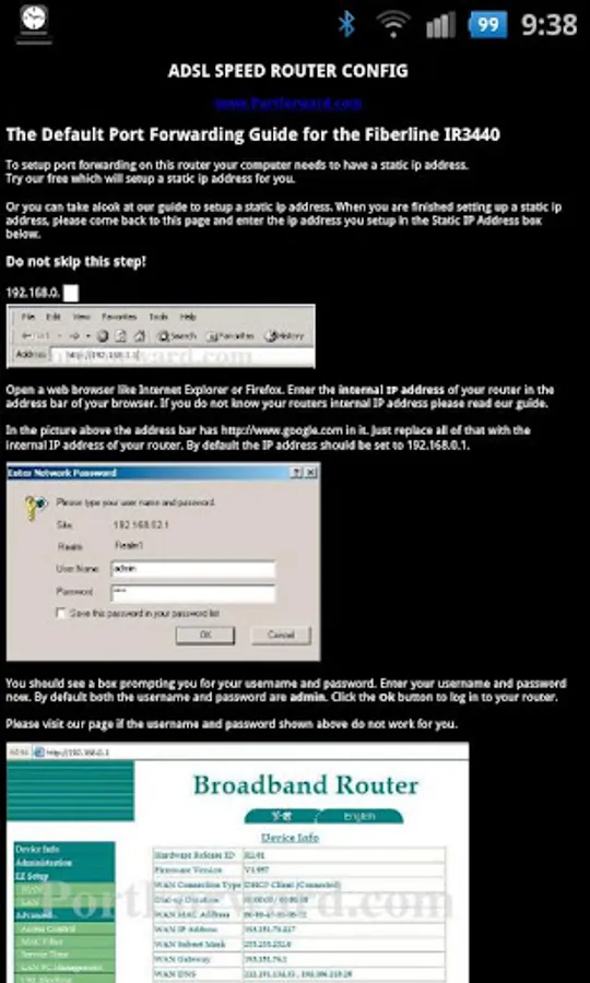 -Documentation of port forwarding. With text and screen-shoots from the router web page.
