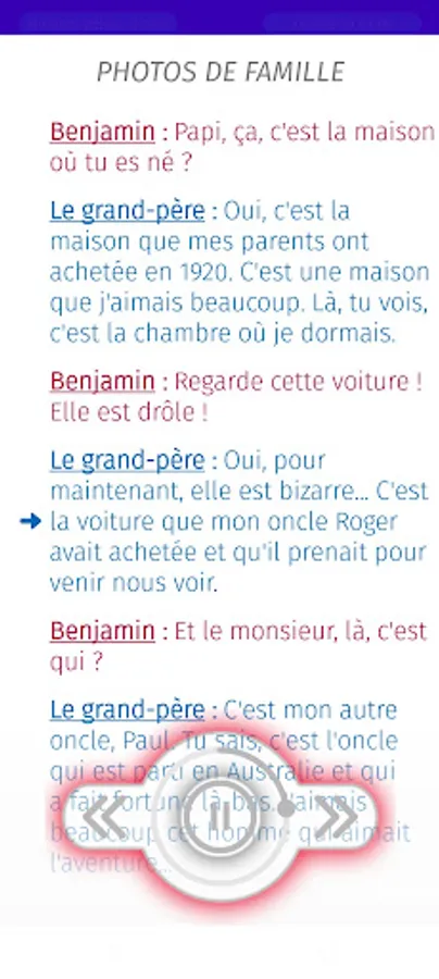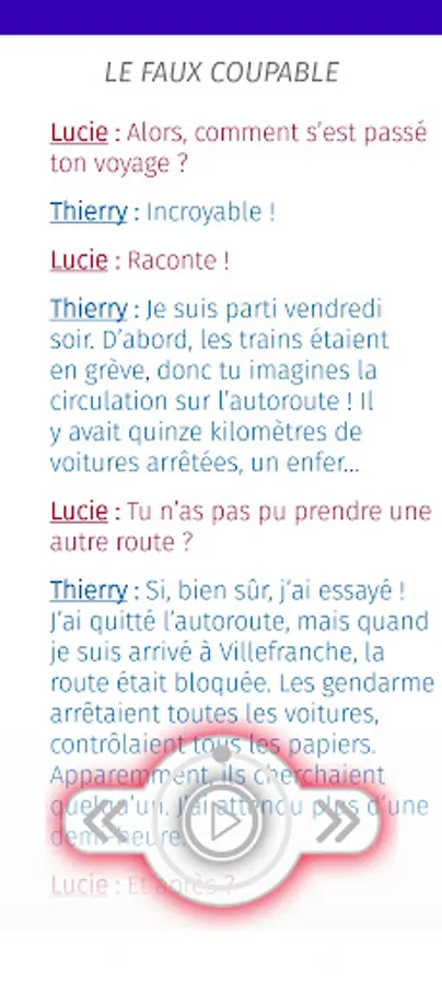 Each lesson is accompanied by a corresponding text, displayed on the same reading page. You can read the text while listening to the audio, which helps you improve your oral and written comprehension at the same time. This combination of audio and text allows you to assimilate the vocabulary, pronunciation and structure of the French language more effectively.