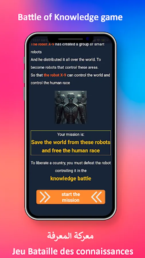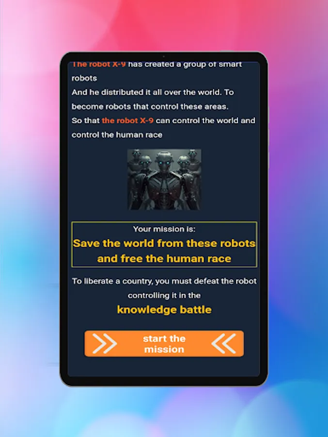 And your mission is to rid the world of these dangerous robots in the battle of knowledge.