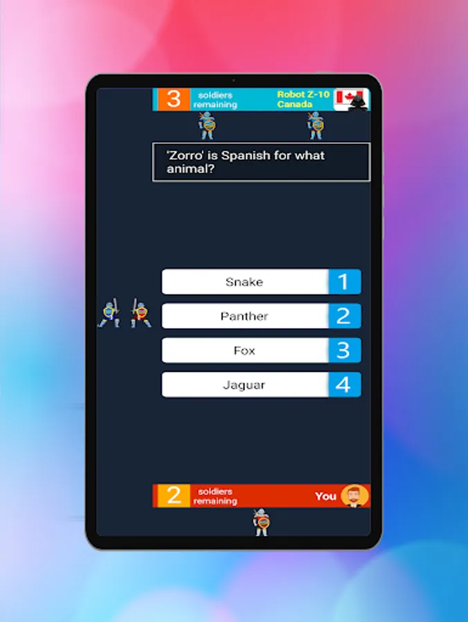 The second phase: where you try to collect the largest number of soldiers before the big battle: every correct answer gives you a new soldier.
