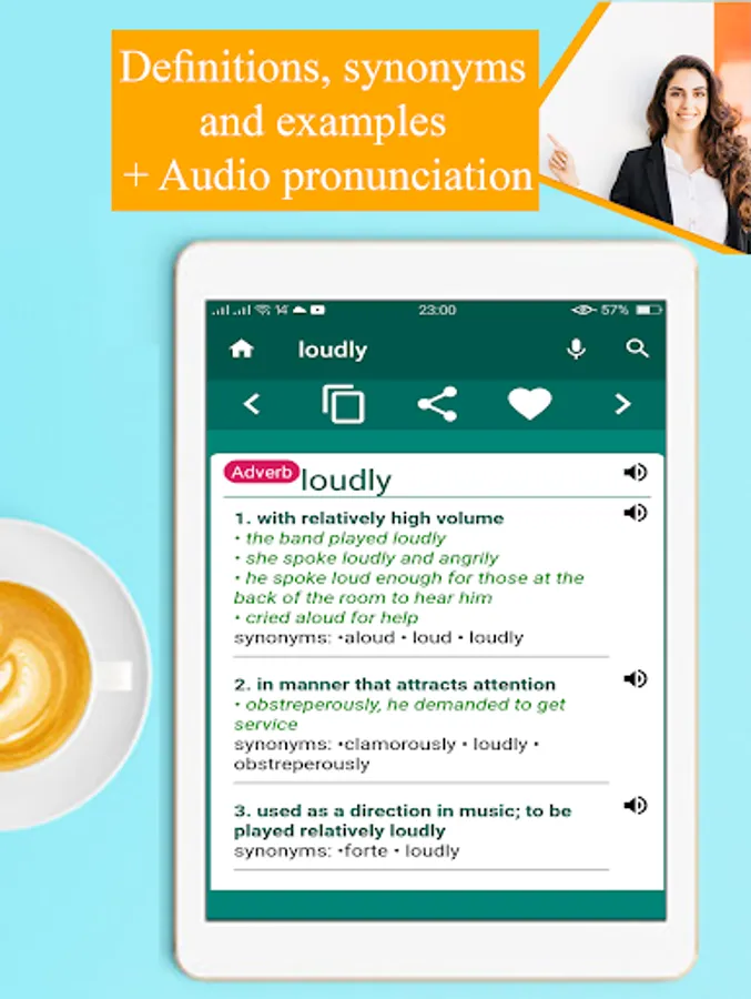 With the Definition and Examples sentences to understand how a word is used in the context, And also Synonyms of the word