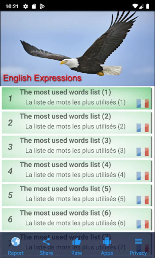 "English Expressions" is an offline language learning app that operates without the need for an internet connection. Access a vast collection of expressions, idioms, and vocabulary at your convenience, anytime and anywhere. Enjoy uninterrupted learning and practice sessions, even when you're on the go or in areas with limited internet connectivity. With "English Expressions," you have a reliable language resource at your fingertips, empowering you to enhance your English skills at your own pace, offline.