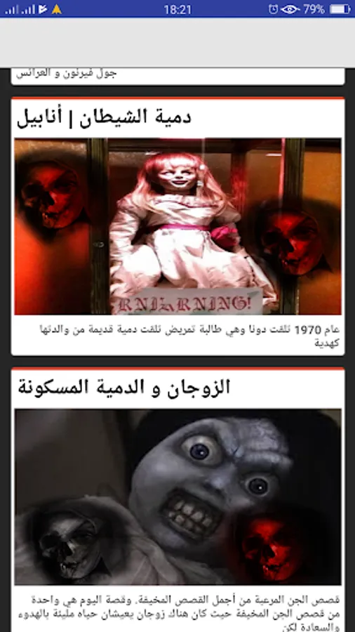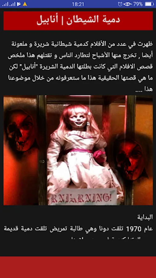 The application brings together a series of the most powerful horror stories about dolls without Net