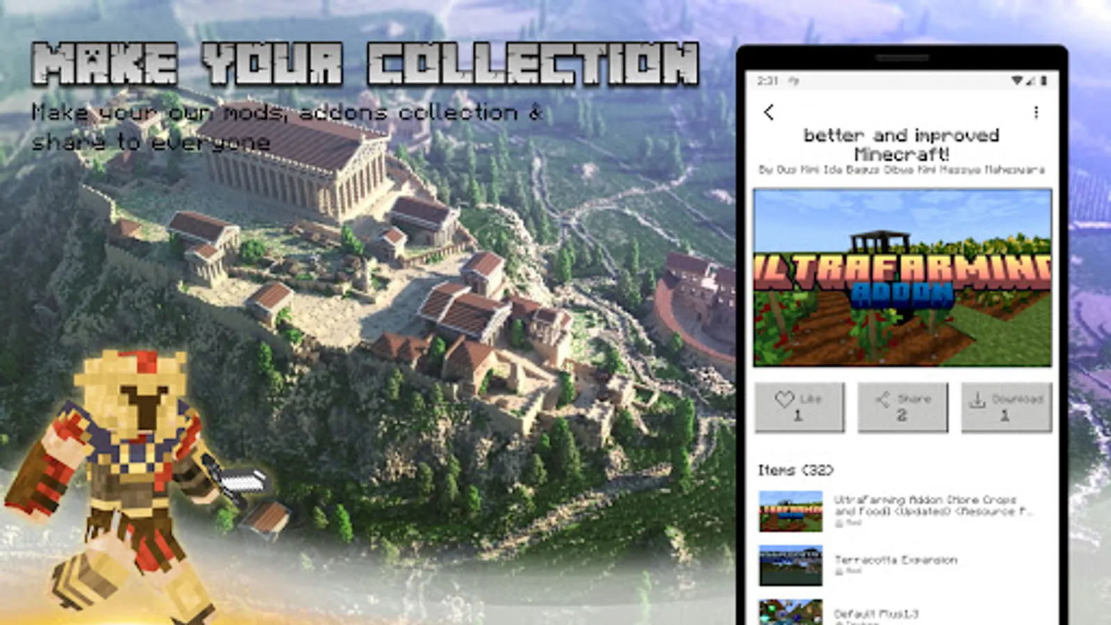Addons Pro is all-in-one app you must have to play Minecraft PE. The app has high quality collection of Addons, Mods, Maps, Skins, Textures, Seeds in which you can manage and install super easy. You can find everything about Minecraft in the app such as: