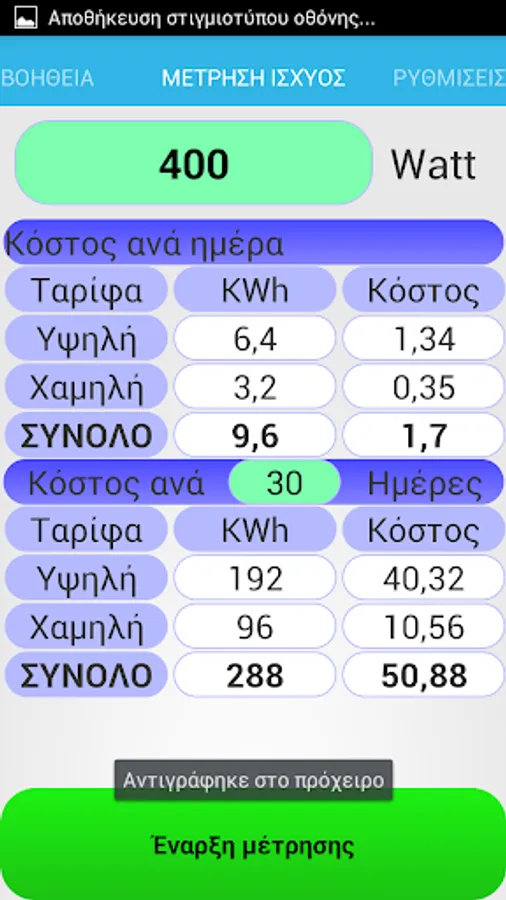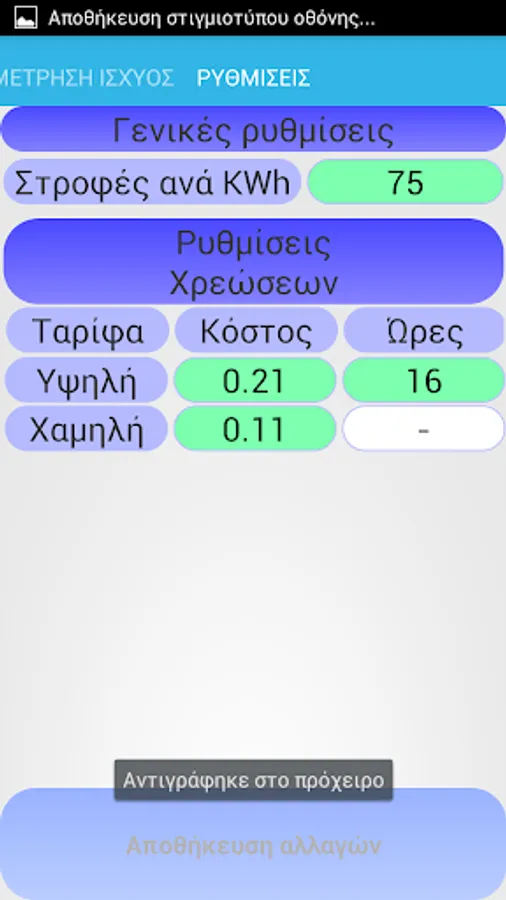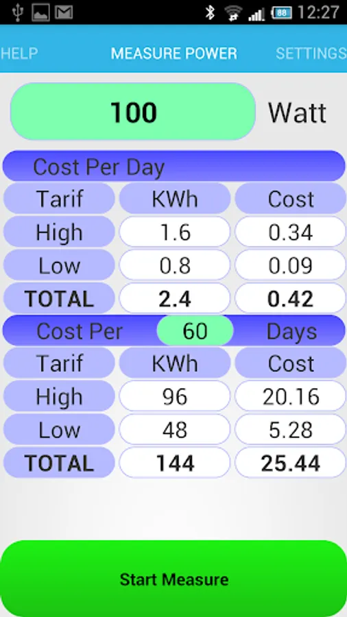 This application helps to calculate the power consumption in KWh or Cost of your installation that you are charged off! You can also use it to calculate how much you have to pay if you have a constant load.
