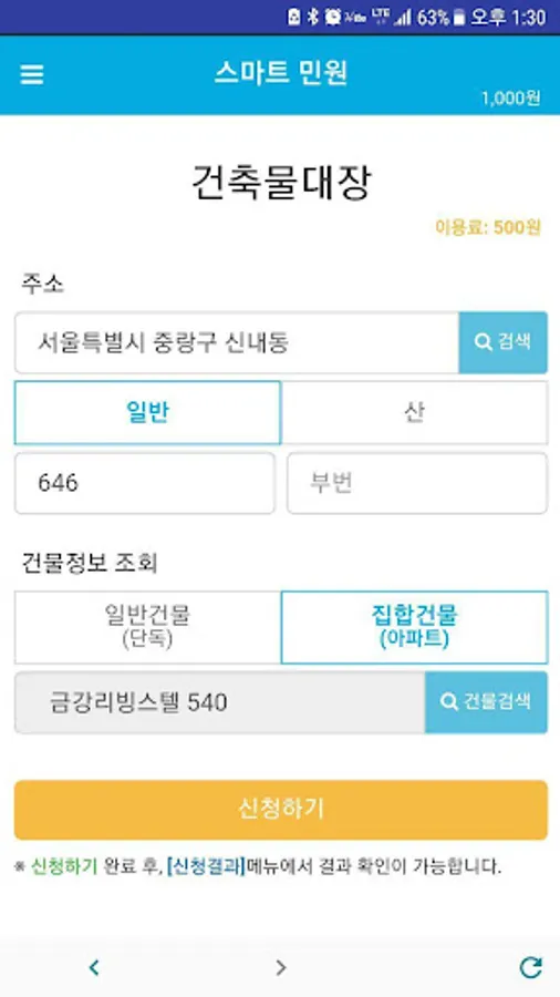 - 최신주소 정보를 이용하여 신축건물에 대한 신청이 가능합니다