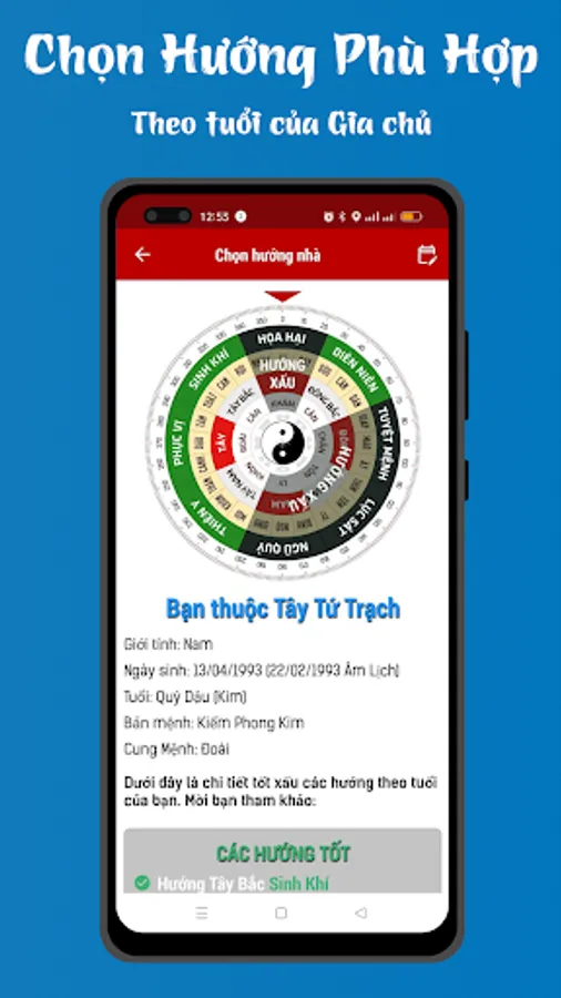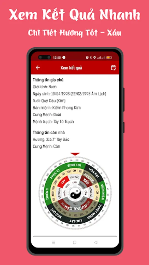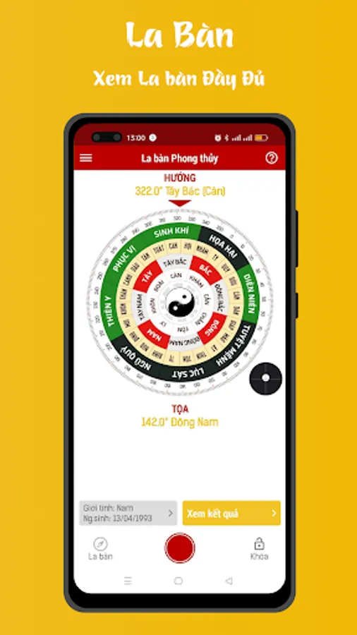 - Enter the year of birth and gender, the application will determine the destiny to give a feng shui compass in accordance with the owner's par.